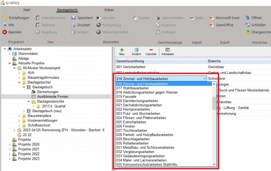 • gewerkezuordnung direkt in der Tabelle