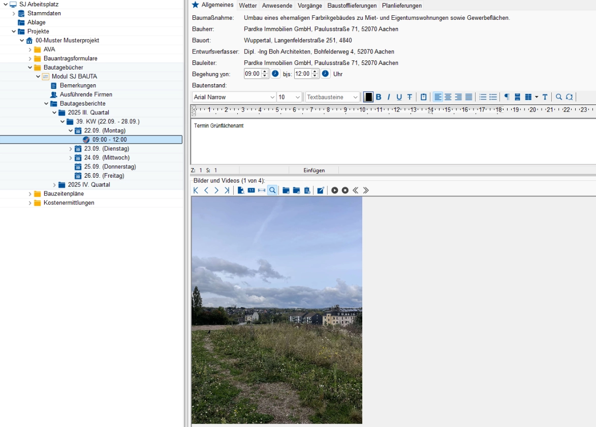Mit SJ BAUTA erstellen Sie Bautagesberichte zur erfolgreichen Baudokumentation.