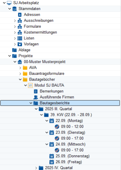 - Bautagesberichte je Quartal und KW