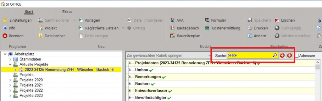 - anlegen neuer, eigener Adressen in Projektkarte möglich